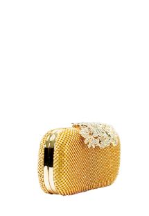 Bolsa clutch dourada cristais