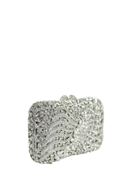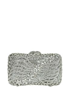 Bolsa clutch metal prata com aplicações de cristais. Fechamento magnético. Acompanha alça em metal. Altura: 9cm / Largura: 17cm / Espessura: 4cm