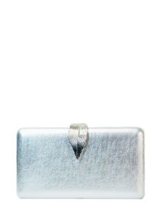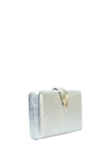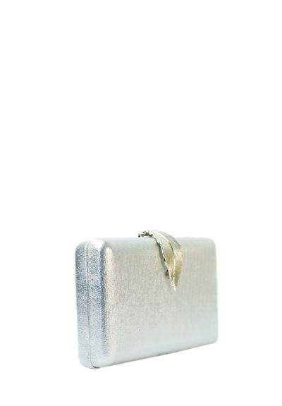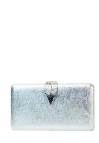 Bolsa clutch metalizada prata. Acompanha alça removível em metal. Fechamento por encaixe com desenho de folha. Altura: 11cm / Largura: 19cm / Espessura: 3cm