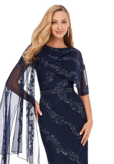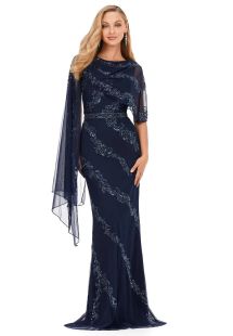 Vestido de festa longo bordado manga longa blusê Ashley Lauren