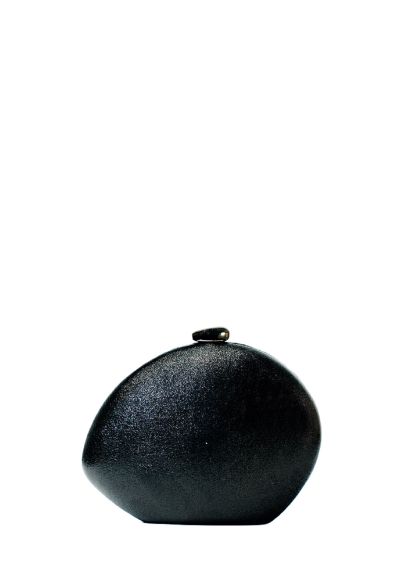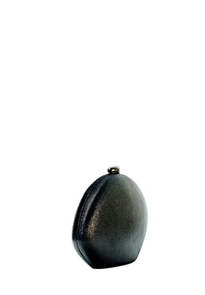 Bolsa clutch metalizada preto formato oval. Acompanha alça removível em metal. Fechamento magnético. Altura: 14cm / Largura: 17cm / Espessura: 3m