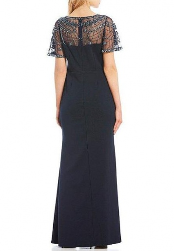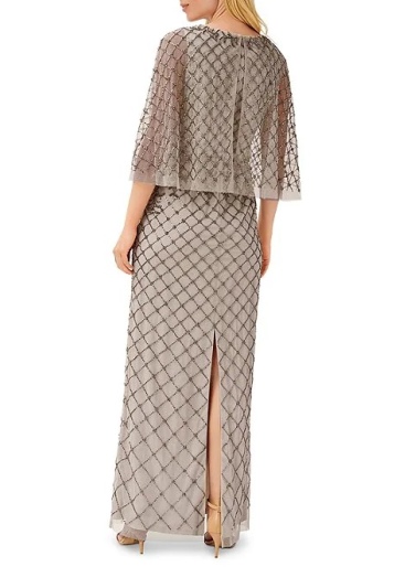 Vestido de festa longo bordado plus size manga capa Aidan Mattox