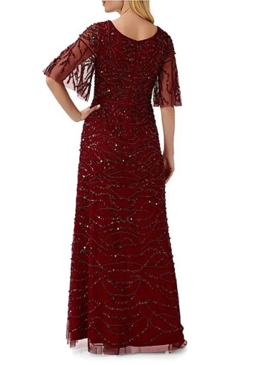 Vestido de festa longo bordado manga curta godê Aidan Mattox