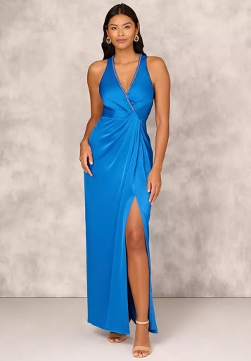 Vestido de festa longo bordado fenda lateral Aidan Mattox